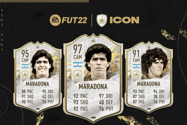 בכל אופן, נכון להיום מראדונה עדיין מופיע במצב FUT (FIFA Ultimate Team) של פיפ"א 22 כקלף יוקרתי ונכסף מאוד בעל דירוג 97, המתייחס לתקופת השיא שלו כשחקן, בנוסף לשני קלפים אחרים המתייחסים לתקופות אחרות בקריירה שלו (מסי של היום, לצורך העניין, מסתפק בדירוג 93 – אמנם הגבוה ביותר במשחק לכדורגלן פעיל, אך עדיין פחות מדייגו).
