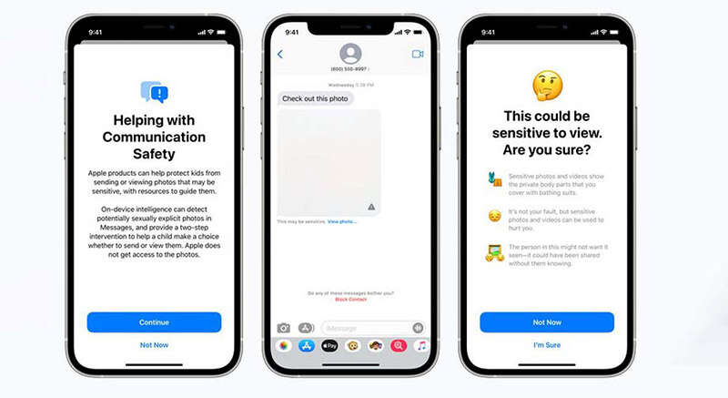 גרסת הבטא החדשה של ה-iOS, מערכת ההפעלה של מוצרי אפל, חוסמת תמונות בעלות "אופי מיני" בחשבונות של קטינים המשתמשים באפליקציית הצ'אט Messages. אם וכאשר הילד יקבל לטלפון שלו תמונה שתוגדר על ידי האלגוריתם כחשודה, היא תיחסם באופן אוטומטי ואזהרה תוצג על המסך. יש לציין שמערכת ההפעלה לא מוחקת את התמונה, והילד עדיין יוכל להתעלם מהאזהרה ולהביט בה אם יחפוץ בכך.