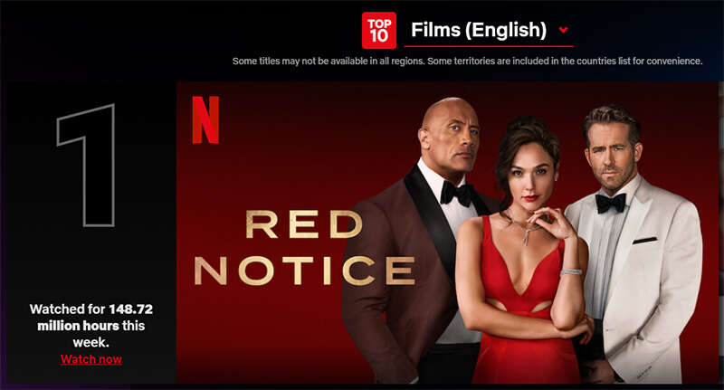 המדידה תיעשה באמצעות 4 רשימות שבועיות, שניתן לצפות בהן אונליין ושם יופיע דירוג של 10 הסרטים המובילים באנגלית, 10 תוכניות טלוויזיה באנגלית וכמות זהה של סרטים וטלוויזיה - שהם לא בשפה האנגלית. ברשימה הזו, סרטה החדש של גל גדות - "הודעה אדומה" ניצב בגאון בראש הרשימה הנוכחית.