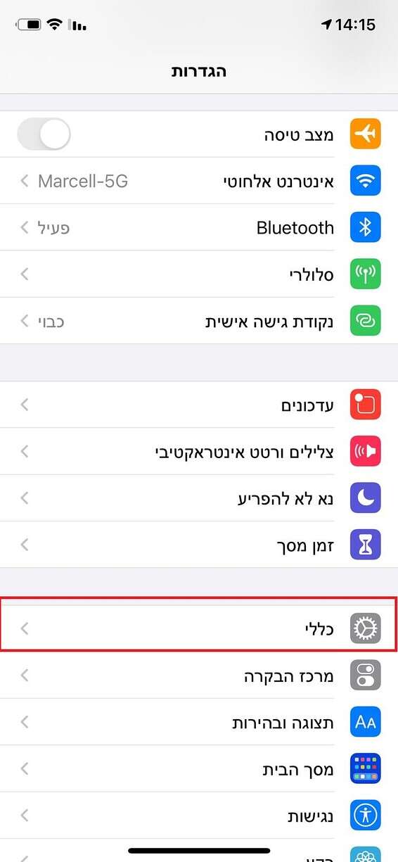 היכנסו ל"הגדרות" (Settings) ובחרו ב"כללי" (General).
