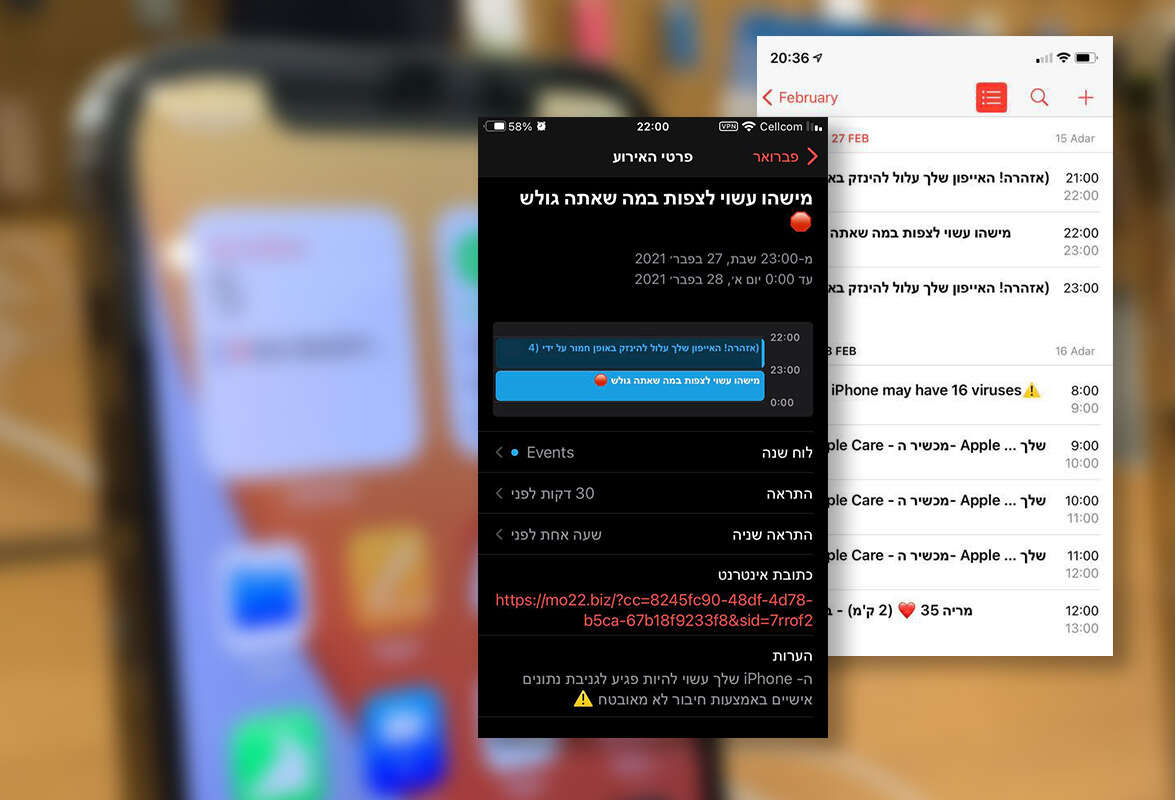 היומן שלכם מלא בפגישות מאיימות שלא קבעתם? בשבועות האחרונים משתמשי אייפון ואנדרואיד מתלוננים כי בלוח השנה שלהם החלו להופיע באופן עצמאי ״אירועים״ שונים, שכוללים בין היתר אזהרות כמו "מישהו עשוי לצפות במה שאתה גולש" או שהחיבור חשוף ואינו פרטי. מנגד, חשוב לציין כי מדובר בבעיה מוכרת שחוזרת על עצמה.