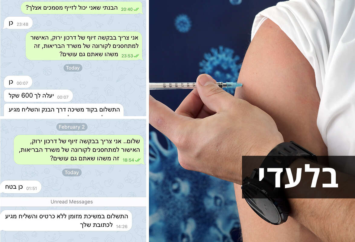 לנוכח ההישג המרשים שרושמת ישראל במבצע החיסונים, יצר משרד הבריאות מתווה "תו ירוק", שיאפשר הקלות מהגבלות מסוימות עבור מתחסנים. אלא שהביקוש הרב לחזור לשגרה, לצד תופעות כמו מתנגדי חיסונים, יצרו כר פורה לפעילות זייפנים ברשת, שמציעים "תעודת מתחסן" מזויפת תמורת מאות ואפילו אלפי שקלים.