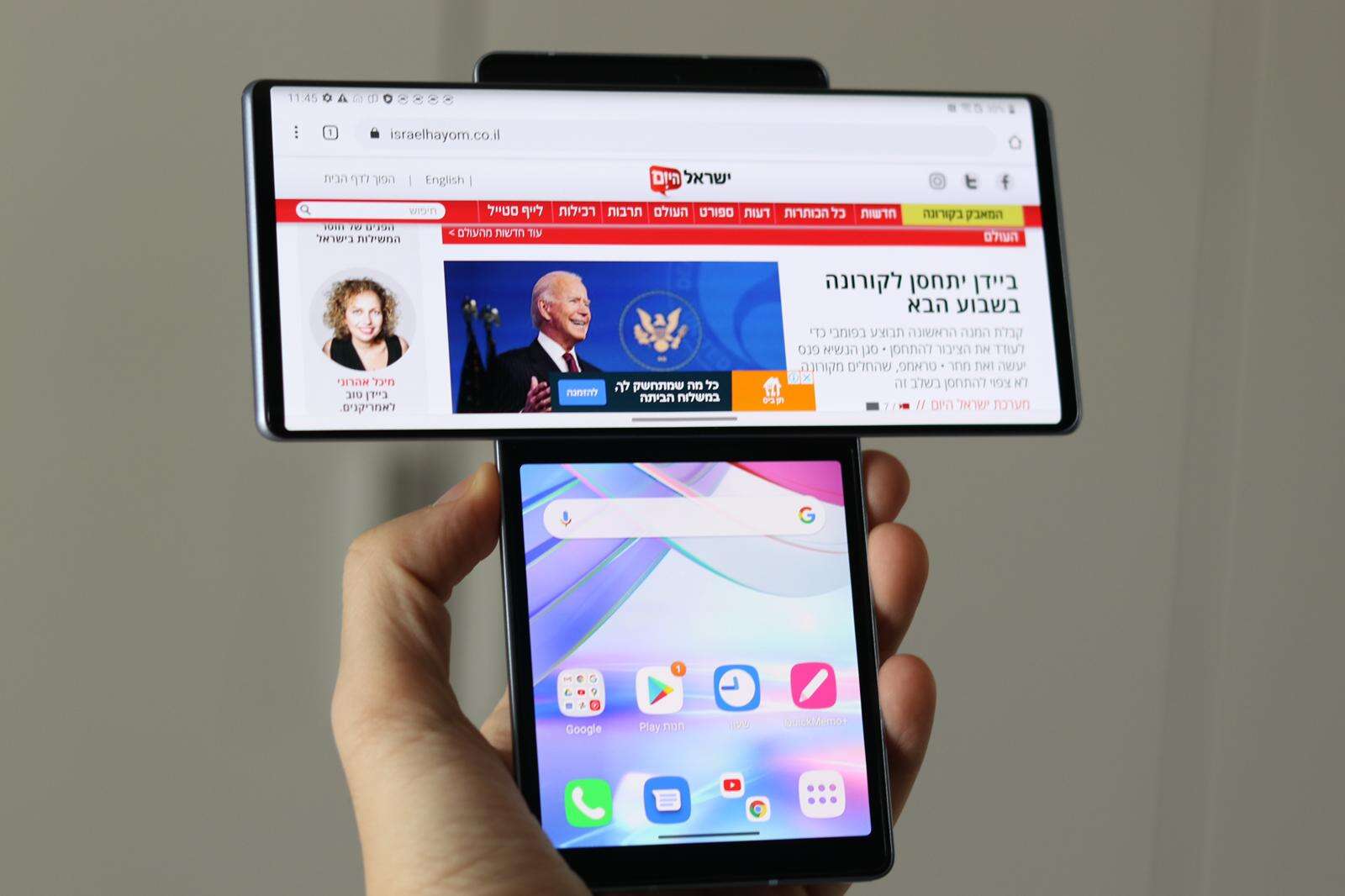 LG WING שונה מכל סמארטפון אחר הקיים היום בשוק, עם סידור מסכים של ראינו בעבר. כלומר, לא מסך מתקפל כמו ה-Fold של סמסונג, אלא טלפון שהמסך הראשי שלו מסתובב על צירו ב-90 מעלות וחושף מתחתיו עוד מסך.