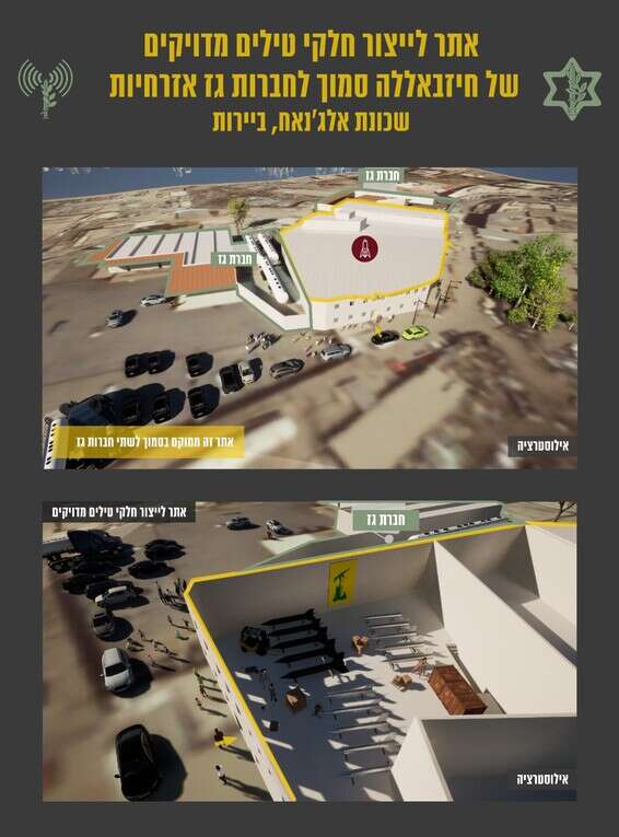 בהמשך לנאום שראש הממשלה בנימין נתניהו נשא הערב (שלישי) בפני עצרת האו"ם, חשף צה"ל תיעוד של שני אתרים בהם פועל חיזבאללה לייצור רכיבי טילים מדויקים בלב ביירות, בירת לבנון.