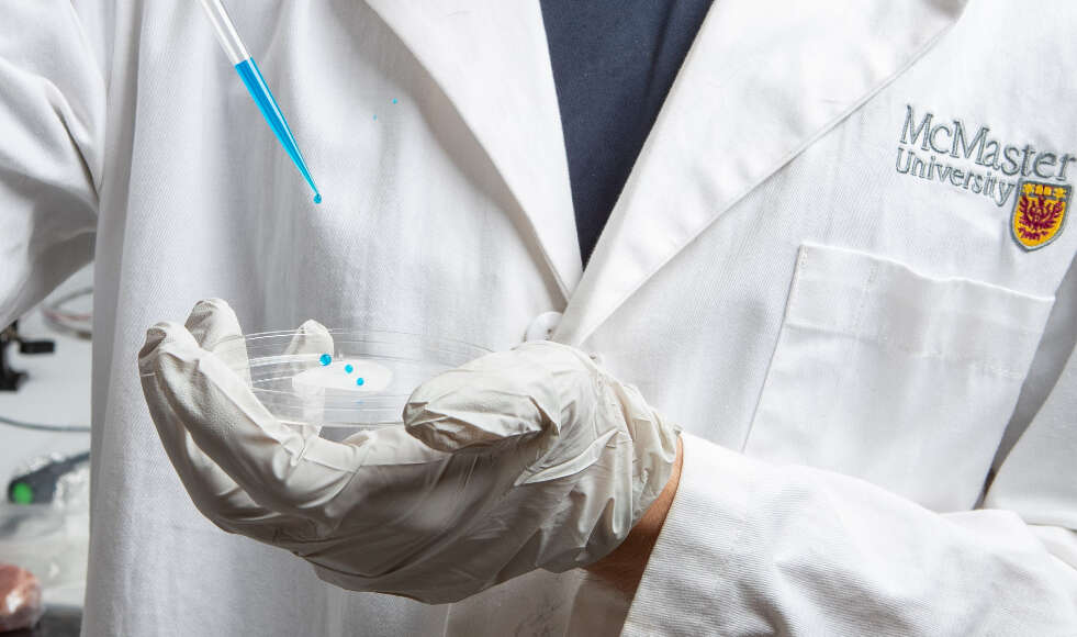 הדגמה של המשטח החדש דוחה החיידקים (ודוחה המים) // צילום: Georgia Kirkos, McMaster University