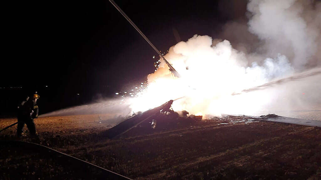 מסוק היסעור לאחר השריפה // צילום: דודו גרינשפן