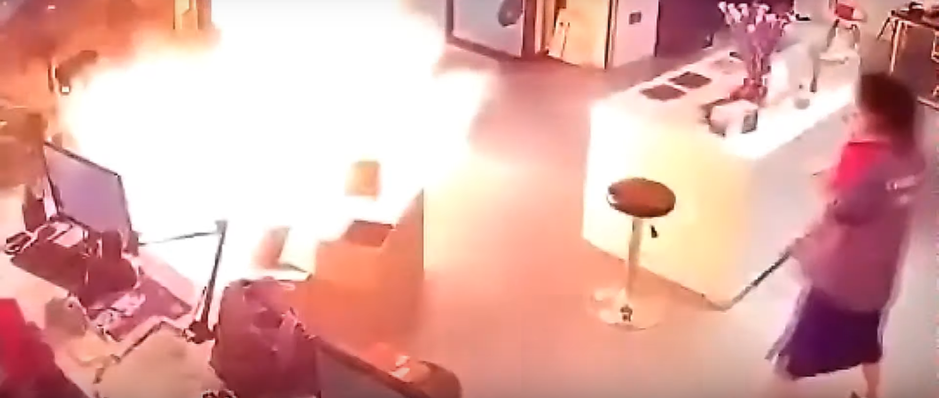 סרטון שהגיע מחנות בסין מראה כיצד סוללה של רכב שמצויה בטעינה (מחוץ לרכב) מתחילה להעלות עשן, ואז היא מתלקחת ופורצת ממנה אש. הלקוחות ועובדי חנות נבהלים ובורחים החוצה. רשויות הכיבוי וההצלה בסין יצאו בקריאה לתושבים שלא לטעון סוללות הדורשות עוצמה גבוהה כמו סוללות לכלי רכב, בבתים או בחללים סגורים.