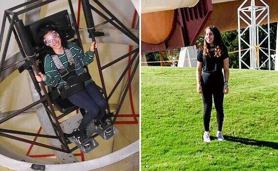 נועה יפלח בסימולטור כוח כבידה של נאס"א // צילום: קובי מטס