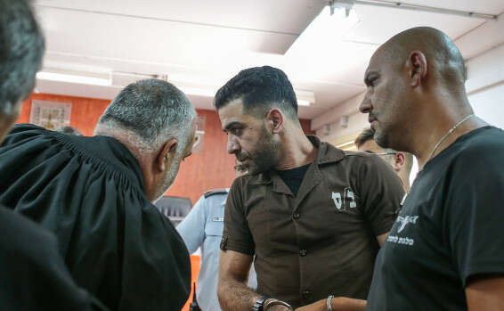 המחבל נאג'י (באמצע) בפתיחת משפטו // צילום: אורן בן חקון