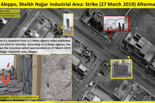 בשבוע שעבר, כלי תקשורת המזוהים עם המורדים בסוריה פרסמו תיעוד של חלק מהמטרות שהותקפו אמש, במתקפה שיוחסה לישראל בסביבות העיר חאלב. בתמונות והסרטונים שפורסמו נראה ההרס הרב בכמה מבנים ששימשו ככל הנראה כמחסנים, באזור תעשייתי. בתיעוד ניתן לראות שתקרות המבנה נופצו, וכן מרבית קירות המבנה קרסו.
