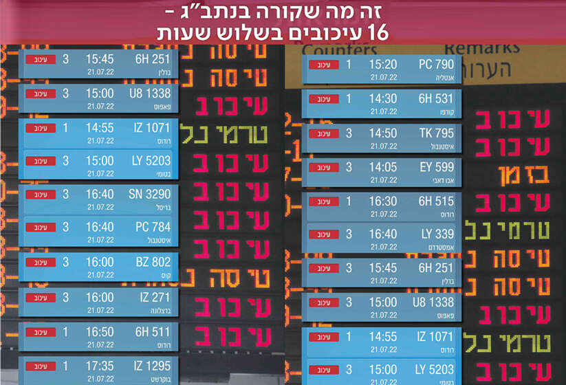 בבחינת לוח הטיסות בנתב"ג בין השעות 14:45 ל-17:45, מצאנו עיכובים בלא פחות מ-16 טיסות. העיכובים לא תלויים בהכרח בחברת התעופה, והרבה פעמים הם נגרמים בעקבות העומסים בנמל התעופה, ובעקבות העובדה שנוסעים רבים לא מספיקים לסיים את תהליך הבידוק עד לשעת העלייה למטוס.
