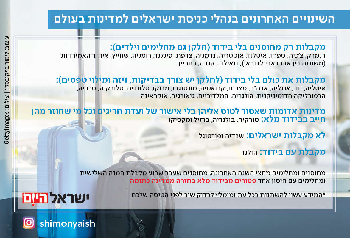 המדינות שמקבלות מחוסנים בלי בידוד ואלו שנסגרו לישראלים