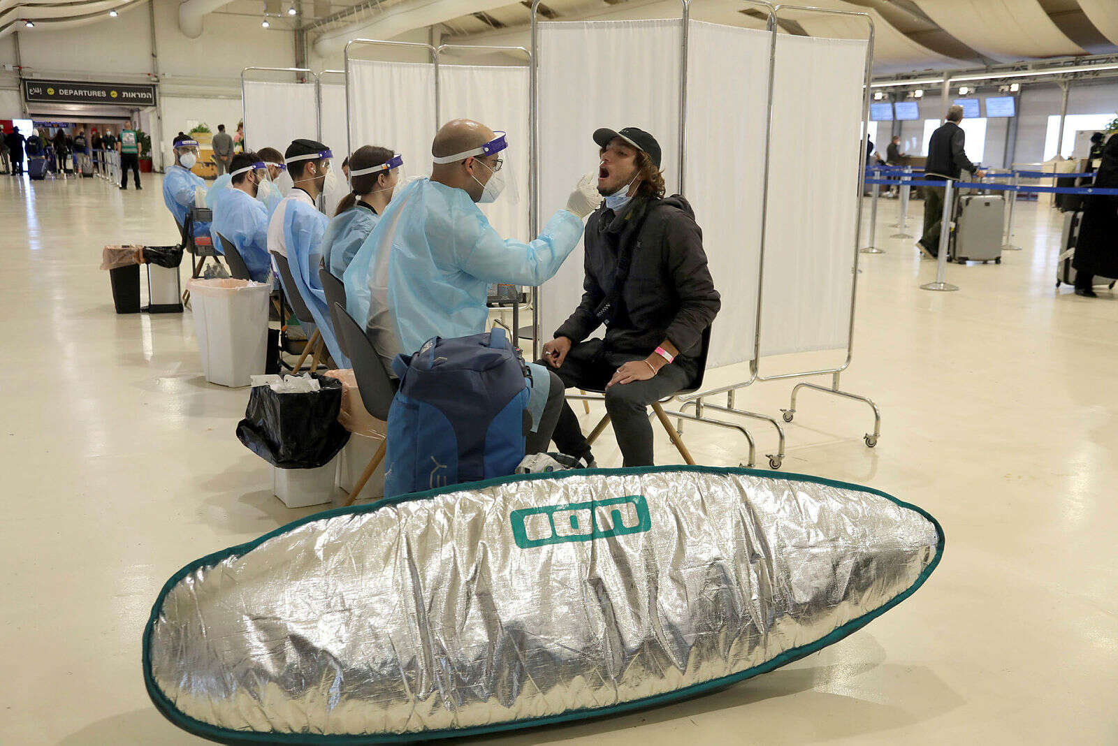 בדיקות קורונה בנמל התעופה בן גוריון (למצולמים אין קשר לכתבה) , צילום: גדעון מרקוביץ'