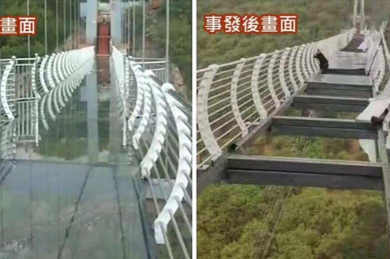 תייר שטייל ביום שישי האחרון על גשר זכוכית ליד העיר לונג-ג'ינג, זכה לחוויה מצמררת ובלתי נשכחת. רוח חזקה העיפה חלקים רבים ממבנה מדרכת הזכוכית של הגשר עליו התהליך, כשהיא למעשה תוקעת את התייר במרכזו ללא יכולת להתקדם או לסגת כשהוא למעשה תלוי בין שמים לארץ. על פי סוכנות הידיעות הסינית הרשמית שינחואה, רוחות חזקות מאד שנשבו באזור התיירות של הר פיאן, היו חריגות וחזקות בעוצמתן וגרמו לכך שחלקים ממבני הזכוכית והמרפסות של הגשר התעופפו.