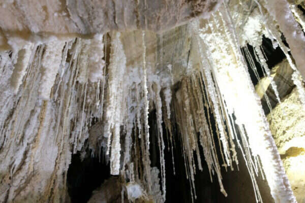 הביקור במערה נמשך יותר משעתיים, כמובן לאור פנסים, ובסך הכל נגענו רק בקטע קצר שלה. בין השאר, עברנו ב"גיליוטינה" - אולם שבו גוש מלח עצום צנח אנכית בין שתי שכבות מאוזנות, ב"לוחות הברית" - אזור במערה שבו שני סלעי מלח ענקיים ומלבניים, וגם ב"אולם החתונות", שם משתלשלת מהתקרה גלריה מרהיבה של נטיפי מלח לבנים, משורגים זה בזה, מחזה שכמעט נראה לקוח מכוכב אחר.