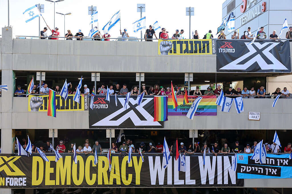 ההפגנה נגד הרפורמה המשפטית בנתב"ג, צילום: אי.פי.איי