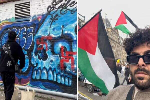 הטיול של הזוג נקטע בכיכר דאם הסואנת, שהייתה רוויה בדגלי פלשתין, ושלטים מפיצי שקרים על ישראל. לאחר שהעלה את התמונות לסטורי, קיבל תמונה של צלבי קרס שרוססו על מבנה בצפון העיר. הוא הצטייד בצבעי ספריי ונסע למקום.