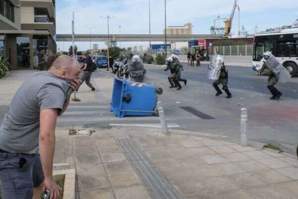 התנגשויות אלימות הבוקר בנמל סודה בכרתים בין מפגינים פרו-פלשתינים לנוסעים של אוניית הקרוז הישראלית "קראון איריס" של מנו ספנות.