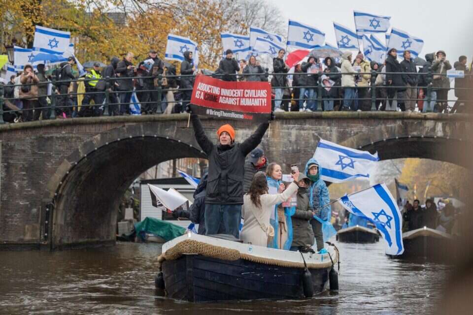 אתמול (שבת) יצאו אלפים לרחובות אמסטרדם כדי לתמוך בישראל. כחלק מהמחווה המרגשת, יצא משט שכלל יותר מ-70 סירות, מעוטרות בדגלי ישראל ששטו ברחבי אמסטרדם.