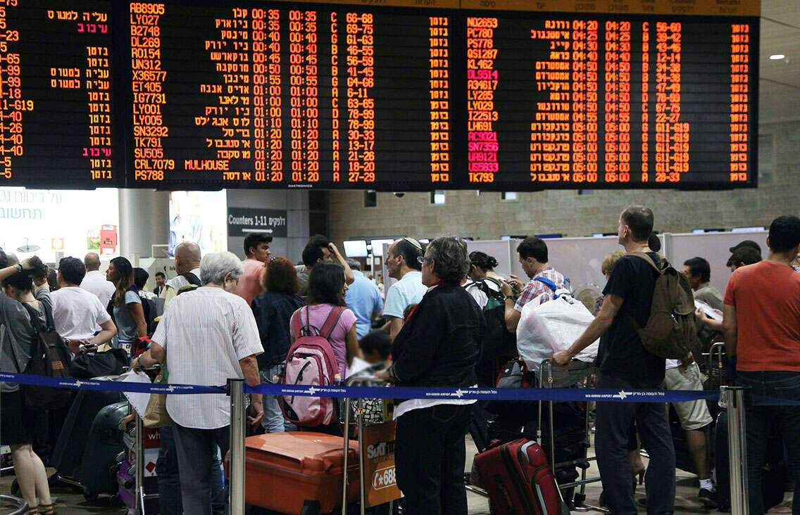 תורי ענק בנתב"ג (ארכיון). צילום: גדעון מרקוביץ'
