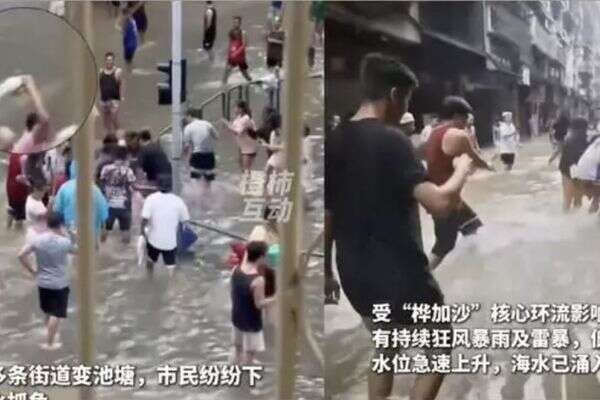 "מי הים הציפו את רחובות מקאו - וכעת התושבים נכנסים פנימה, דגים ומרגישים כאילו מדובר באגם ענק", נכתב בחשבון ה-X של Shanghai Daily, שפרסם את הסרטון.