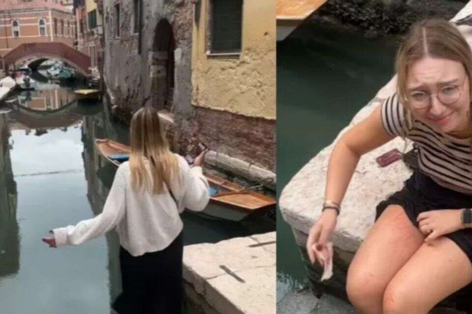 בסרטון נראית ויקטוריה גוזנדה, משפיענית תיירות מפולין, צועדת במורד מדרגות כשהיא מרותקת למסך הטלפון - עד שהיא מועדת וצונחת היישר למים. בהמשך נראית גוזנדה כשהיא יוצאת מהתעלה עם רגל חבולה אך מחייכת למצלמה.