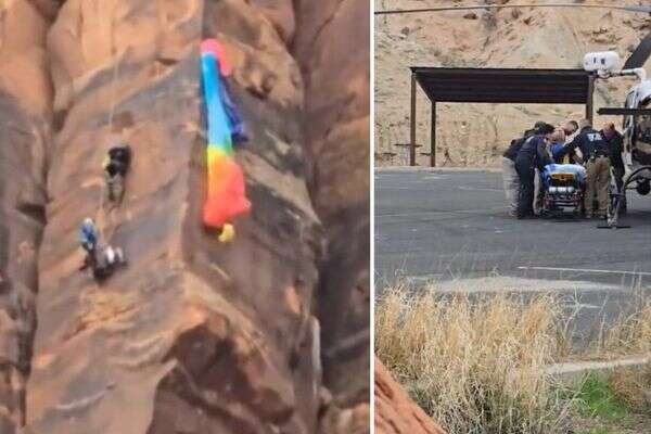 המשך החילוץ היה לא פחות דרמטי: מסוק של ה-DPS Aero Bureau התקרב בזהירות אל הצוק, בעוד משבי הרוח מהלהבים קורעים את שאריות המצנח ומזיזים את הצנחן קדימה ואחורה.