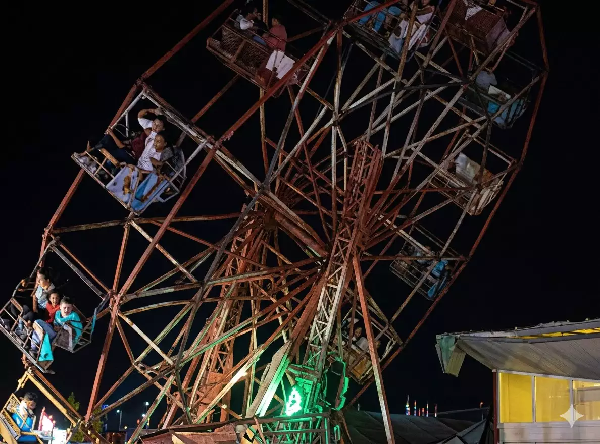 עדים והערכות ראשוניות הצביעו על כשלים מצטברים. אנשים שהיו על המתקן ובסמיכותו הזהירו מקולות חריקה מדאיגים, אך המפעיל, על פי הנטען, המשיך להפעילו. עדי ראייה אמרו שהאטרקציה נראתה צפופה מאוד, נשאה כמעט 80 בני אדם, יותר ממה שתוכננה לשאת, כאשר צד אחד של עמוד תמיכה נשבר באמצע ההפעלה. קיים חשד שהבסיס היה חלש, מעוגן בצורה לקויה, ולא היה מסוגל לעמוד בעומס היתר, וחלק הנדנדה ניתק מבסיסו כאשר המערכת קרסה.