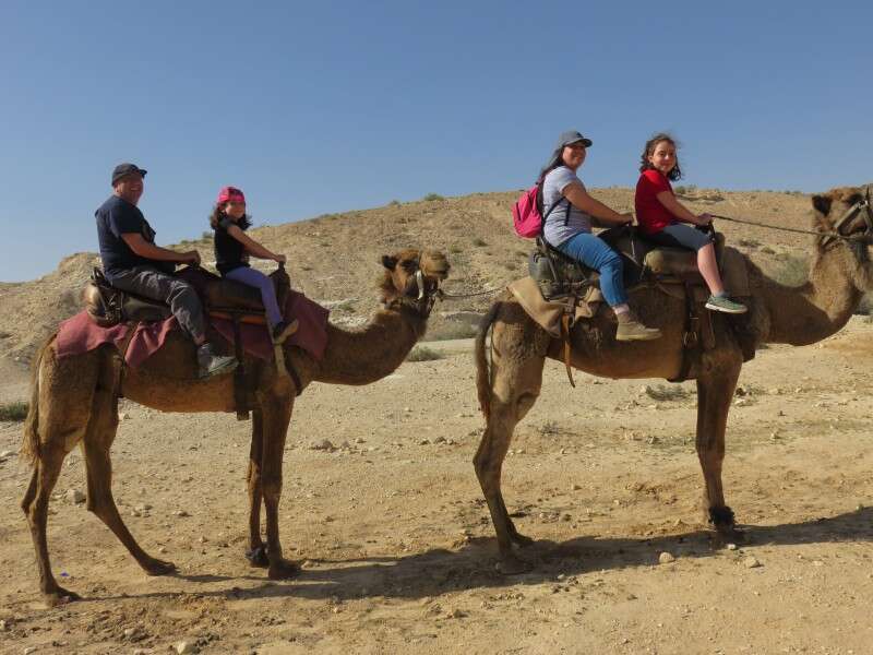 עופר, אשתו עינת והבנות שי ועדי בטיול על גמלים // צילום עופר בן דוד מחברת עופרים