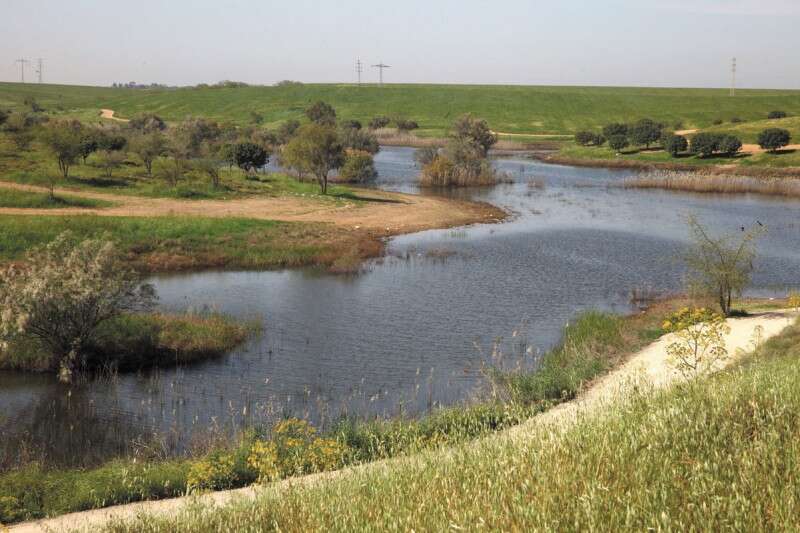 מסלול הטיול כאן מתאים בדיוק לתקופה הזו, של שלהי האביב בואכה הקיץ, אז המקום חם מאוד ואינו מוצל. אנחנו מגיעים לשמורה ומתחילים לצעוד בשביל השחור בין הגבעות המוריקות, שכעת מנוקדות בשלל פרחים: כלניות ופרגים שעוד נשארו, מרבדי חרציות, מרווה ריחנית ואפילו פרחי דבורנית, שזמן רב לא ראיתי. כשתטפסו על אחת הגבעות בשביל המסומן תוכלו להבחין מדרום־מערב לשביל באגם, שאפשר לרדת מהשביל וללכת לעברו. אגם זה נוצר בעקבות בנייה של סכר במורד הנחל, שנועד לאגור את מי השיטפונות ולהחדירם לקרקע, והוא יבש בתקופת הקיץ. עופות החולפים בסביבה אוהבים מאוד להגיע לכאן, משום שנוסף על צמחים אכילים יש באגם גם צפרדעים וסרטנים קטנים.