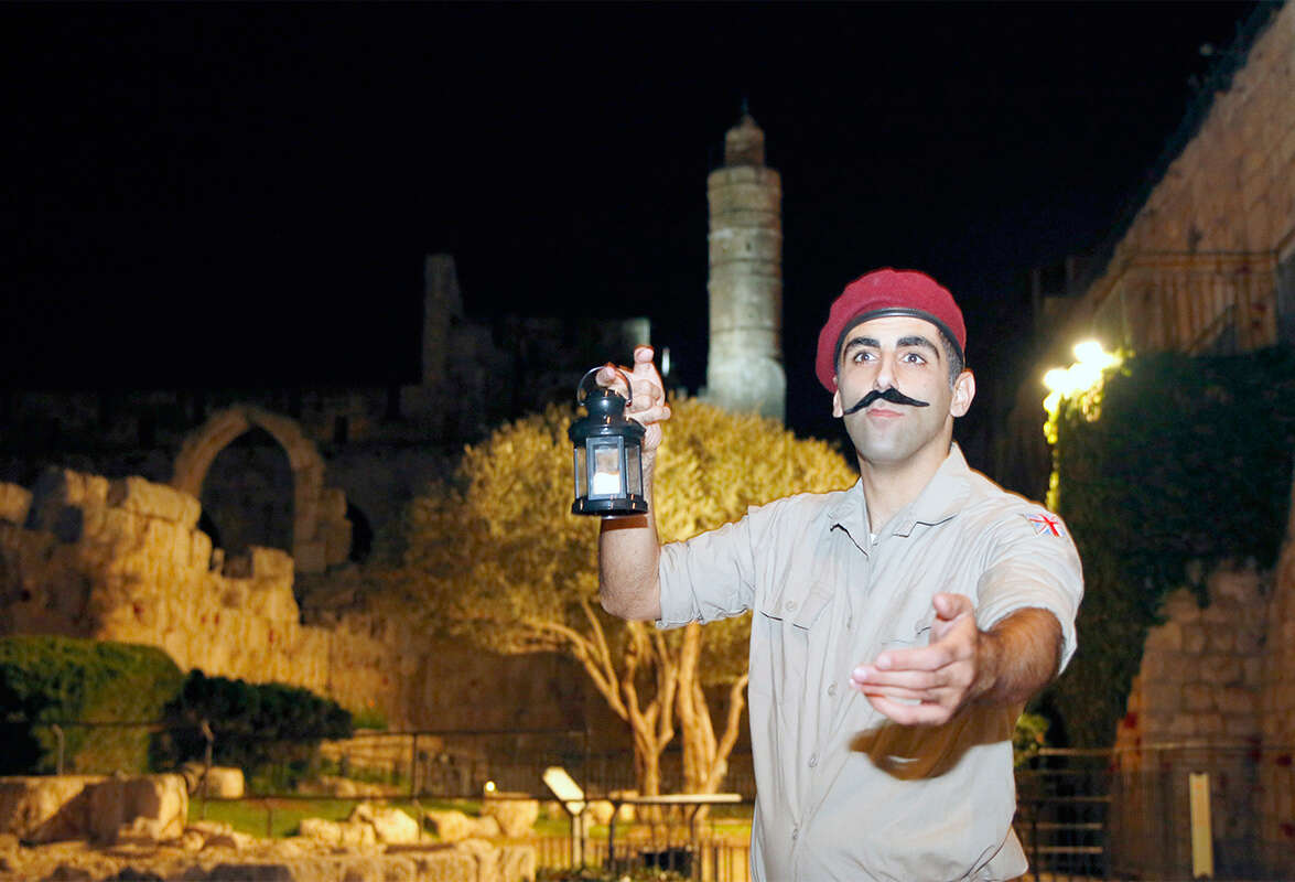 סיור עששיות במצודה של מגדל דוד כולל סיור על חומות המצודה, הדלקת נרות חגיגית ואכילת סופגניות.