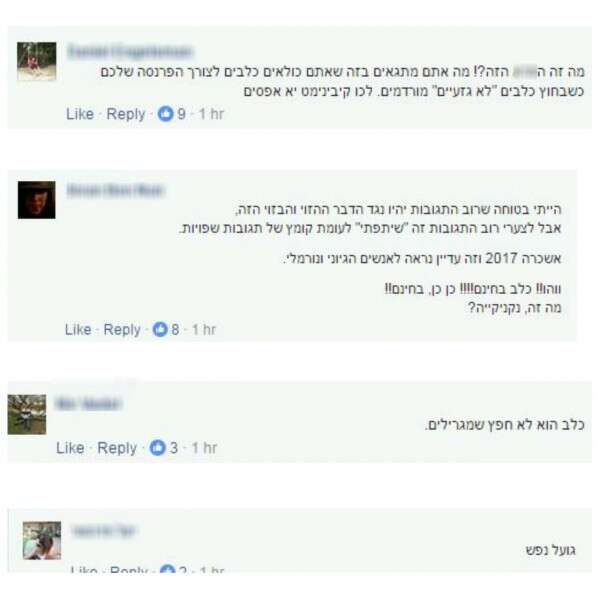השילוב של הטקסט המעוגן בגוף הפוסט לצד תמונה של גור כלבים בתוך כלוב יוצר תחושה קשה כבר מצפייה ראשונה בפוסט, זאת עוד לפני קריאת מאות התגובות הלא אוהדות, בלשון המעטה.