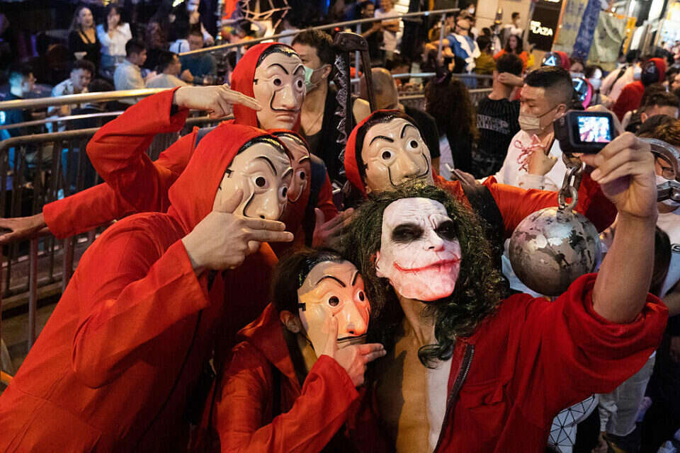 אנשים חוגגים את ליל כל הקדושים, אתמול, צילום: אי.אף.פי