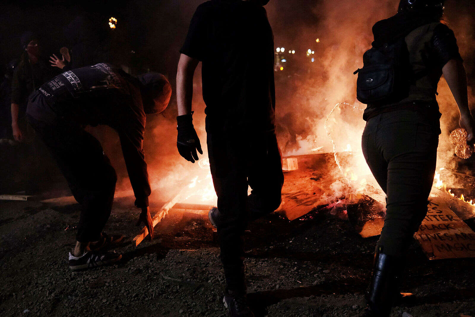 המפגינים השתוללו במטה המשטרה, שברו חפצים והעלו את המקום באש כשהם גם משתפים תיעודים מהמעשה ברשתות החברתיות. בין המפגינים כאמור, היה גם מר שינזינג, שהסתובב וצולם עוד קודם לכן צועד על אחד הגשרים בעיר כשהוא ללא חולצה.