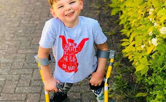 חמש שנים לאחר שהזוג אימץ את הפעוט המסכן ולקח אותו תחת חסותם, נקנו לו רגליים תותבות שמאפשרות לו ללכת עם קביים. עם זאת, רצו ההורים לעודד את טוני הקטן ללכת עם האביזר החדש, ומצאו לכך דרך מקורית: "אתגר ה-10 קילומטרים". כפי שפורסם ב"דיילי מירור", מדי יום צועד טוני למרחק של 300 מטרים עם רגליו התותבות, ובמקביל פתח בקמפיין מימון המונים עבור בית החולים לילדים אוולינה, בו הוא הרוויח חזרה את חייו.
