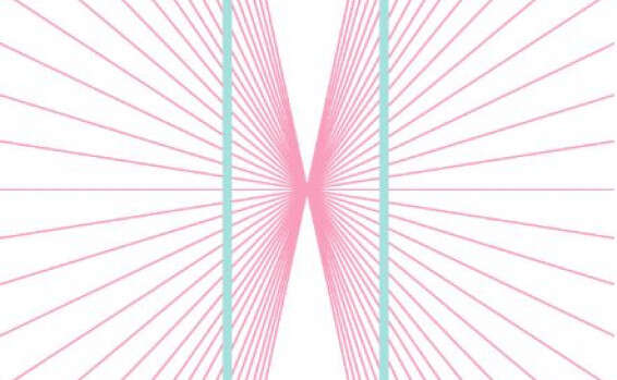 מה אתם רואים? שימו לב לתמונה שלפניכם. מופיעים בה קווים ורודים שנעים משני הצדדים לעומקה ונפגשים במרכזה. לאורך התמונה חותכים את הקווים שני פסי טורקיז. הביטו ישירות על שני הפסים ונסו להחליט האם הם ישרים או עקומים.