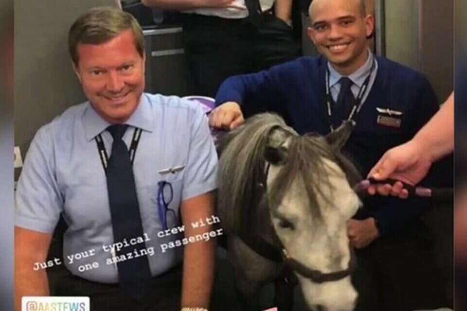לפי אתר חברת אמריקן איירליינס, סוסים מיניאטוריים מאומנים מאושרים לטוס במטוסים כמו חיות מחמד קטנות אחרות. גם משרד התחבורה האמריקני מתיר את ההטסה של סוסי פוני מיניאטוריים והאישור לכך, כמו גם לחתולים, כלבים ובעלי חיים אחרים, מותנה בהתאמה מנטלית ופסיכולוגית של הנסיעות לבעלי החיים הללו. רוב חברות התעופה האמריקניות מתירות הטסה של בעלי חיים קטנים בגיבוי מלווה שיתמוך בהן, אולם חברת דלתא מסרבת לעשות זאת.