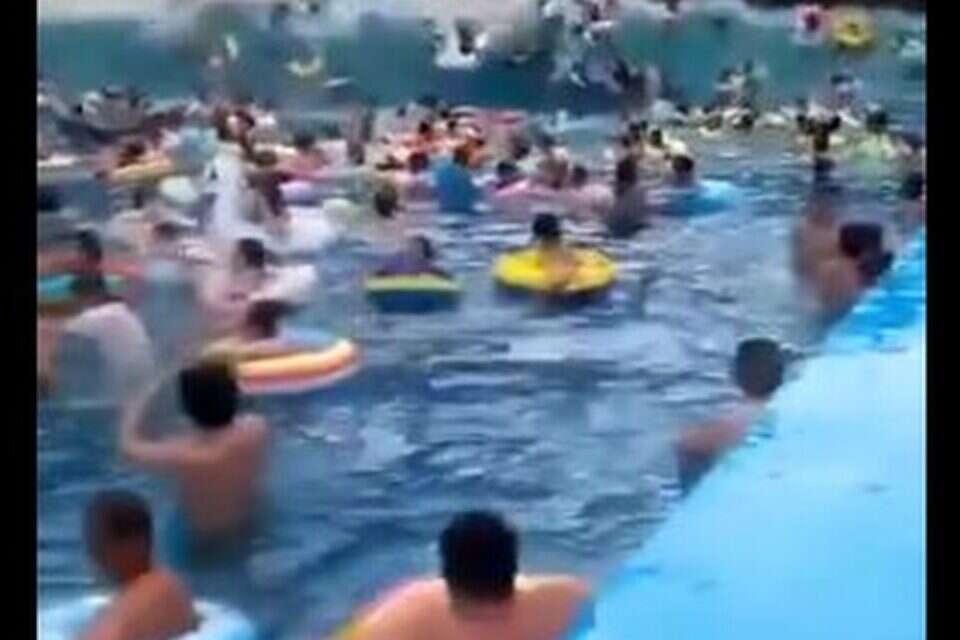 צפו: עשרות פצועים ב"צונאמי" בבריכה בסין