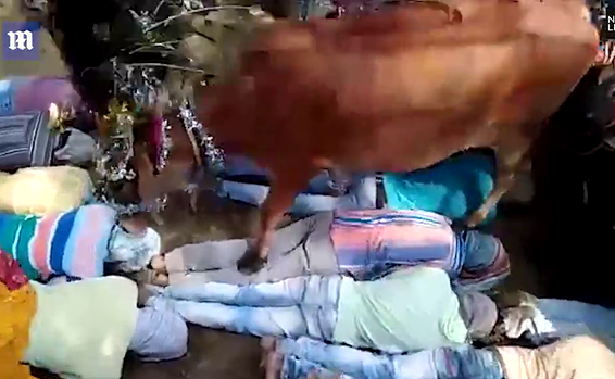צפו: בטקס מקודש - פרות דורכות על צעירים