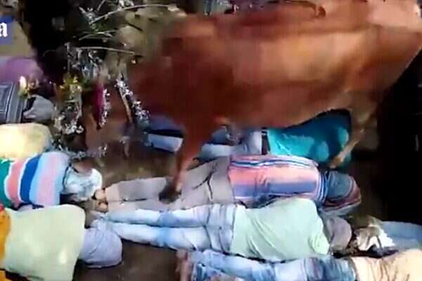 צפו: בטקס מקודש - פרות דורכות על צעירים
