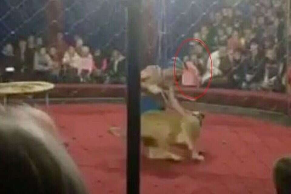 מופע קרקס ברוסיה לאילוף אריות כמעט הפך השבוע לטרגדיה כשילדה בת ארבע התקרבה לגדר הביטחון והותקפה על ידי אריה.