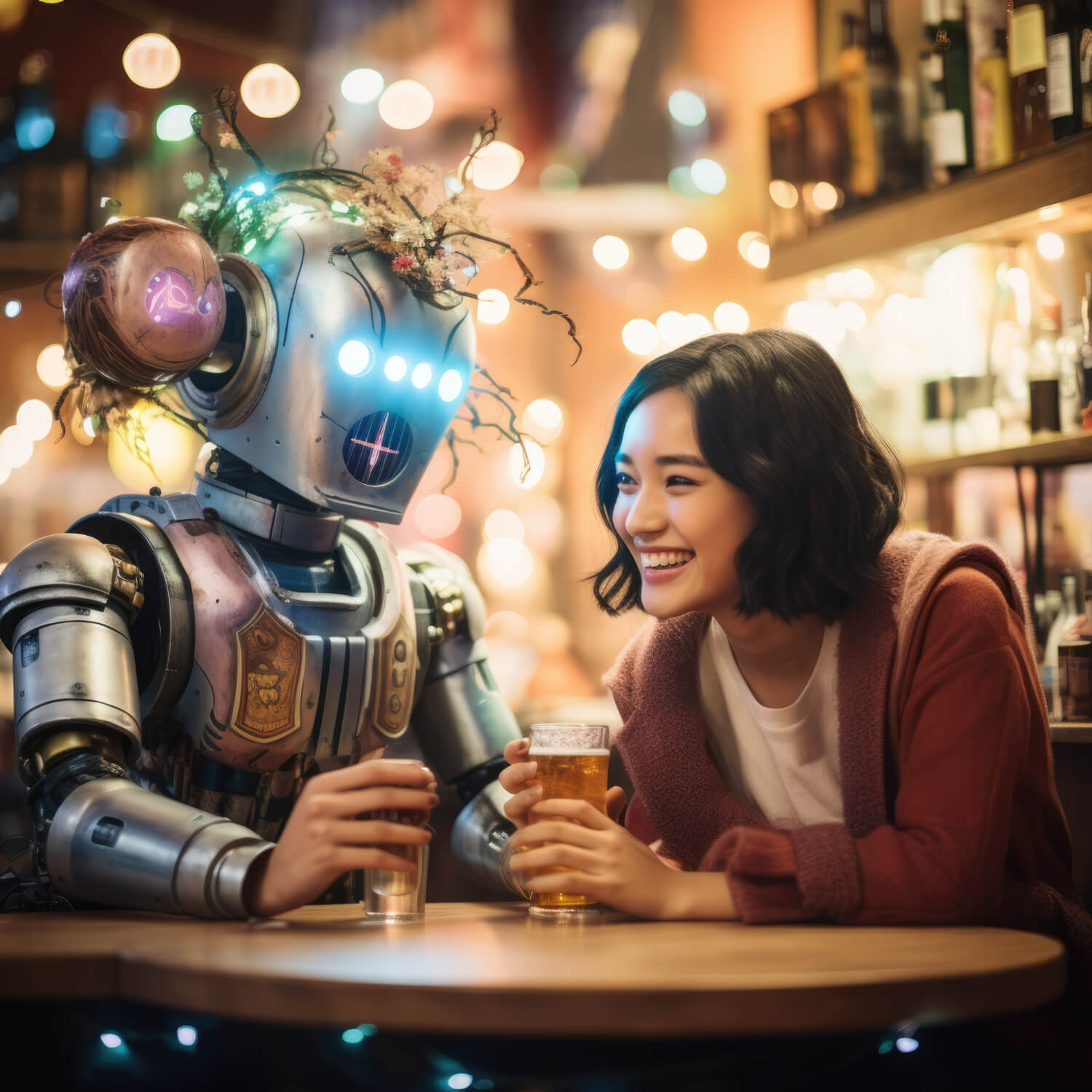 בחורה בדייט עם רובוט. צילום: Freepik באמצעות בינה מלאכותית