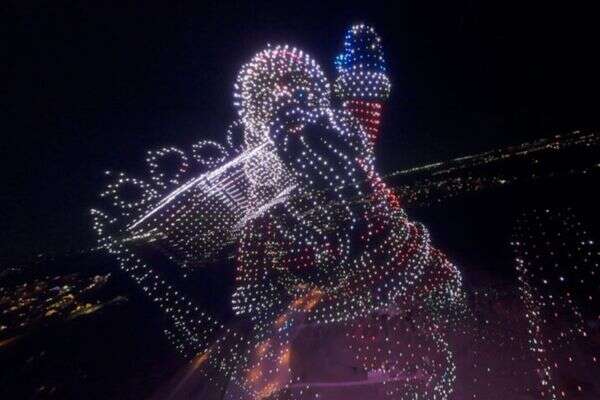 המופע החגיגי כלל מעל 200 רחפנים שיצרו עיצובים בנושא החג בשמיים, ומשך כ-25,000 צופים. העיר קידמה את האירוע כ"תצוגה מרהיבה של רחפנים מסונכרנים, הטסים במבנה ליצירת עיצובים חגיגיים יפהפיים בשמי הלילה". עם זאת, האווירה החגיגית הפכה לפאניקה כאשר הרחפנים החלו להתקלקל. סרטונים שהתפרסמו ברשתות החברתיות תיעדו את הרגע בו חלק מהרחפנים התנגשו באוויר ונפלו לתוך הקהל והאגם. סרטון שהועלה ל-X (לשעבר טוויטר) הראה מספר רחפנים מתנגשים ונופלים ללא שליטה. ברקע, נשמע גבר אומר, "אוי לא! אני לא מאמין שהם אמורים ליפול".
