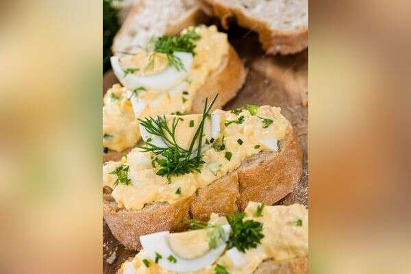 החמיצות מאוזנת היטב עם הטעמים העשירים של הביצים והמיונז.