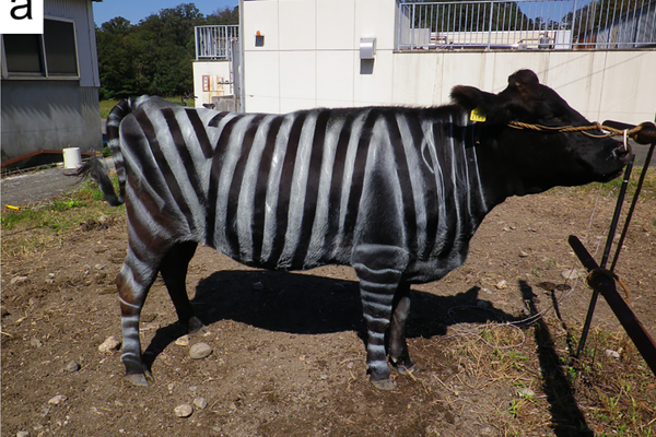 פרות שחורות ביפן זוכות בשנים האחרונות לטיפול מיוחד – צביעה בפסים לבנים בדפוסים דמויי זברה. הסיבה לכך היא מחקר שנערך במרכז המחקר החקלאי באיצ'י בשנת 2019, ופורסם בכתב העת PLOS One ב-2019, וגילה כי הטכניקה הפשוטה הזו מפחיתה משמעותית את עקיצות היתושים והזבובים על בעלי החיים.