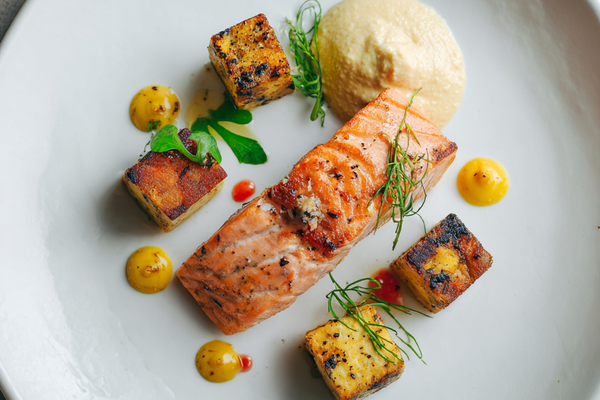 סלמון אטלנטי מבושל (85 גרם) מספק 16.8 גרם חלבון, בתוספת אומגה 3, ברזל, ויטמין A ו-D.